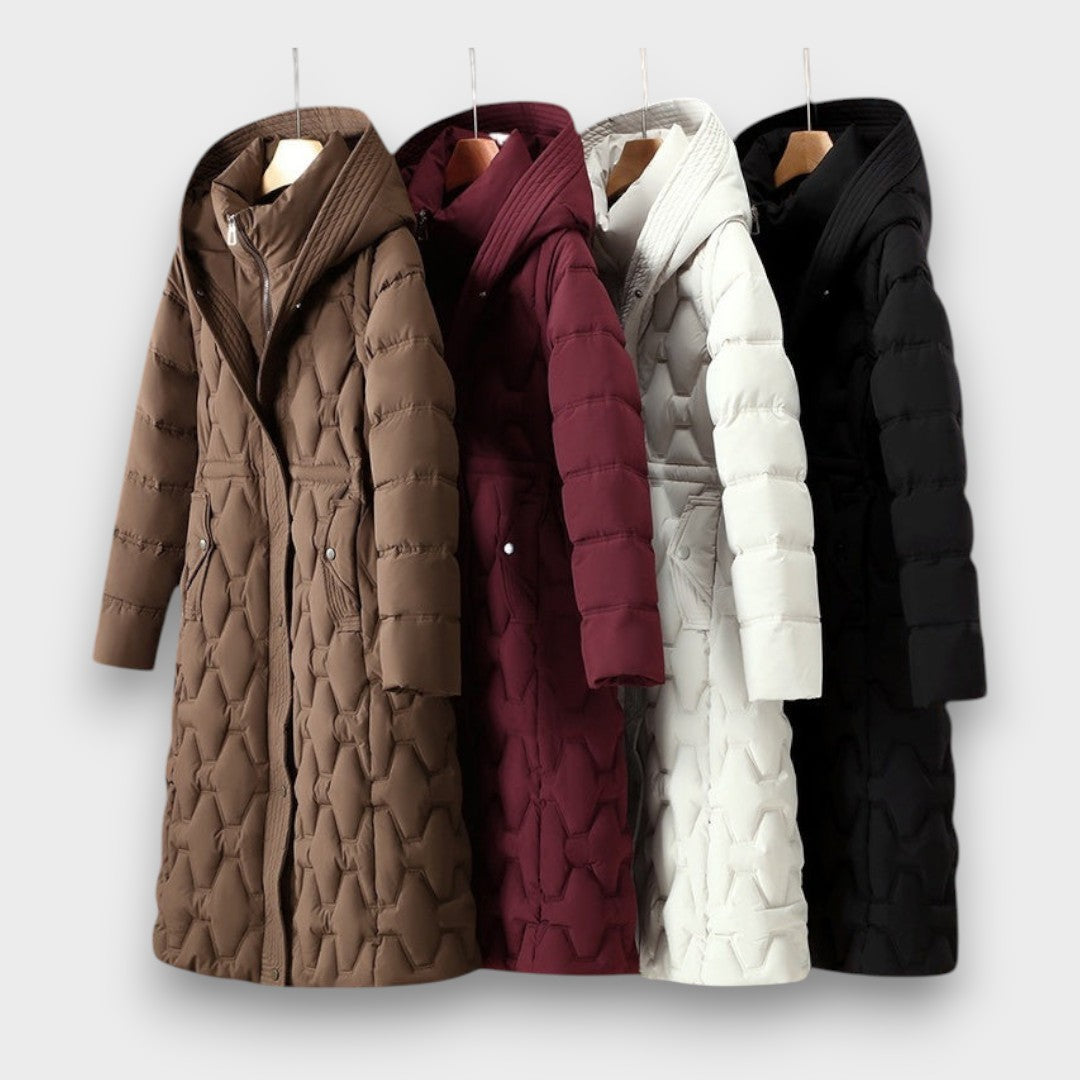 Olivia™ | Dlhá bunda s kapucňou a páperím