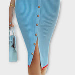 Oživte svoj šatník elegantnými pastelovo modrými rebrovanými úzkymi šatami s kontrastným lemom!