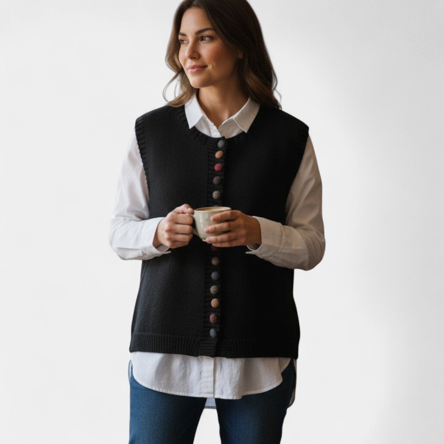 Pletený sveter Karmen je dokonalá kombinácia pohodlia a elegancie. Jeho nadčasový dizajn a univerzálny strih ho robia nevyhnutným kusom vašej garderóby – ideálny na vrstvenie cez košeľu, šaty alebo tričko. Skvele sa hodí na prácu, voľný čas aj večerné príležitosti.