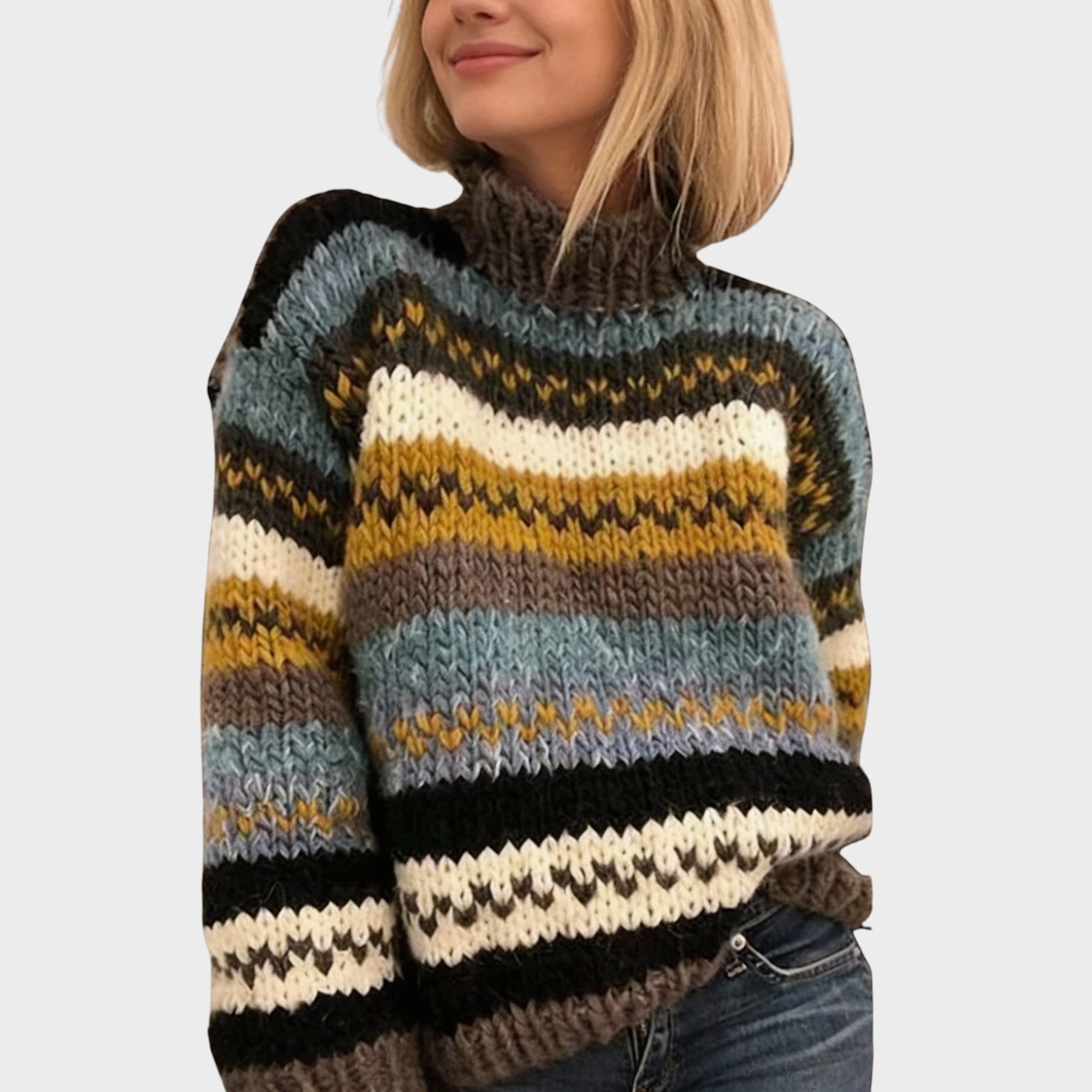 • Sveter s vysokým pásom, ktorý zaručuje väčšie pohodlie a tepelnú ochranu
