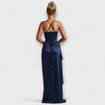 Objavte Lora Pomorské Maxi Šaty, ktoré spájajú eleganciu a šarm. S očarujúcim srdcovým výstrihom a odvážnym, vysokým rozparkom na stehne zdôrazňuje vašu siluetu a pridáva nádych vzrušenia. Sametovo saténový povrch vytvára luxusný dojem, zatiaľ čo nastaviteľné ramienka zabezpečujú dokonalé priliehanie.