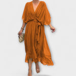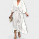 Trochu priesvitné rukávy a asymetrický lem pridávajú hravý nádych, zatiaľ čo opasok na zaväzovanie zvýrazňuje pás a zabezpečuje lichotivý strih. Ideálne na slávnostné príležitosti alebo špeciálne momenty v každodennom živote – šaty Amoura sľubujú sebavedomý a štýlový vzhľad.