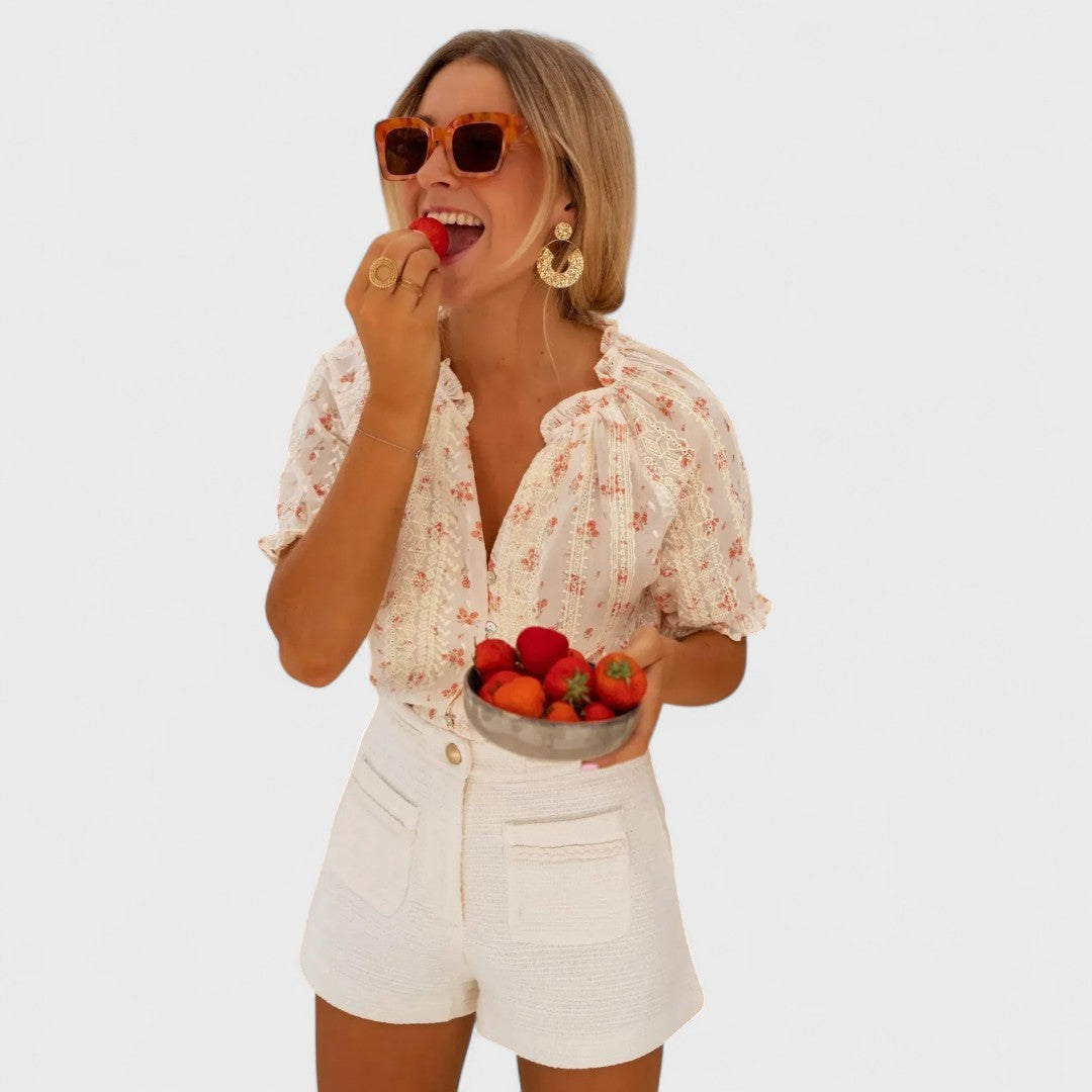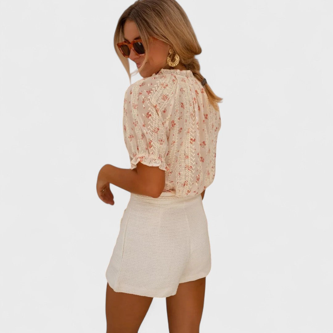 • Jemný kvetinový potlač – Prináša letnú atmosféru a zdôrazňuje ženskú energiu bez prehnanej výraznosti