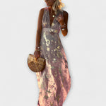 Elegantný outfit s V-výstrihom a lesklou dekoráciou z trblietok.