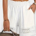 Ľahké a ženské, tieto letné šortky spájajú romantický detail čipky s praktickosťou vreciek. Ich ľahký strih a jedinečná textúra ich robia ideálnymi na prechádzky, dovolenku a uvoľnené letné chvíle.